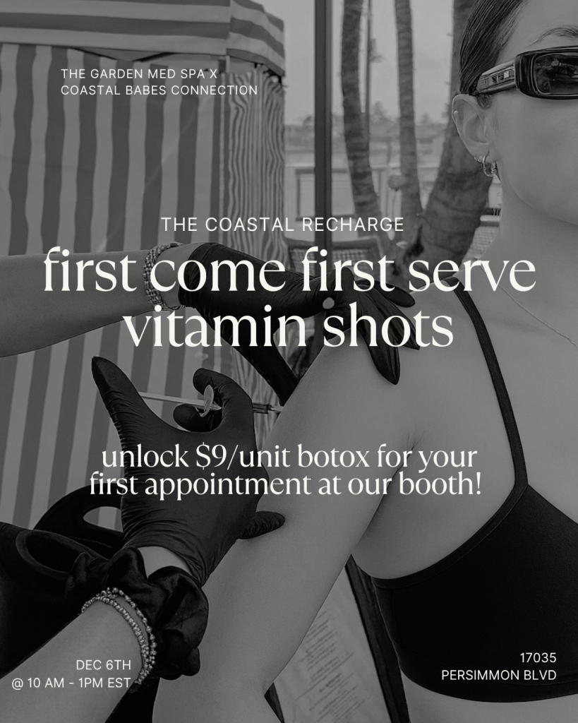 A coastal-recharge wellness experience designed to restore body and mind. Visit The Garden’s booth for your free Glutathione vitamin shot and unlock $9/unit Botox® for your first appointment at any Florida Garden location.