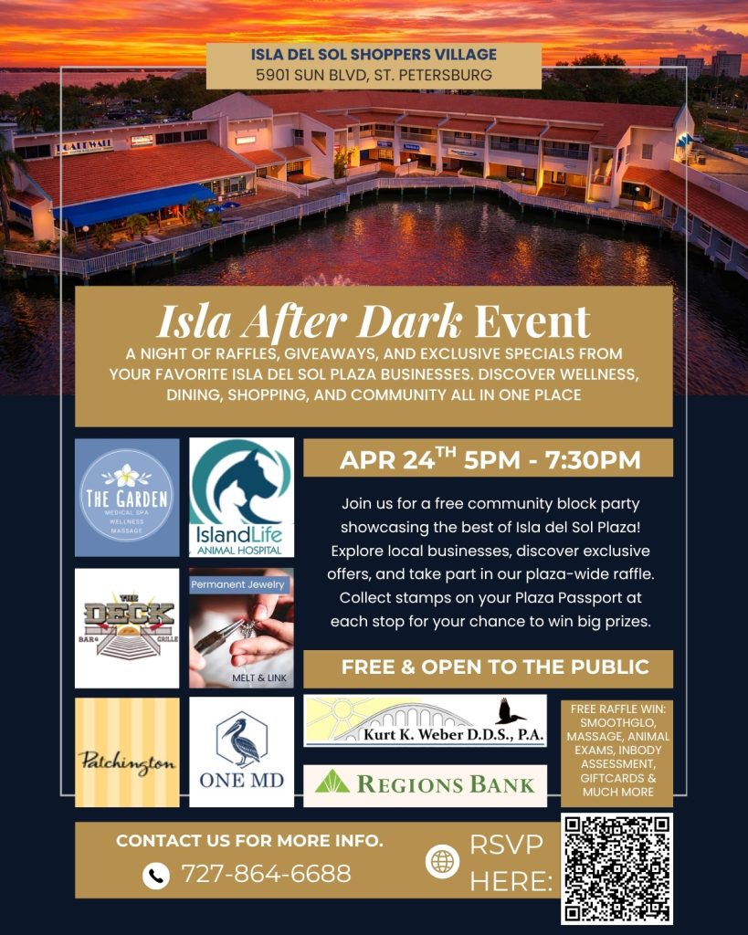 Join us for the Second Annual Isla After Dark, a community block party bringing together the businesses of Isla del Sol Plaza for an evening of connection, discovery, and exclusive experiences.