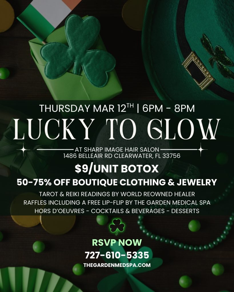 Join The Garden Medical Spa for a special pop-up event in collaboration with Sharp Image Hair. Lucky to Glow is an elevated evening designed to bring together aesthetics, style, and wellness in a fun, social setting.